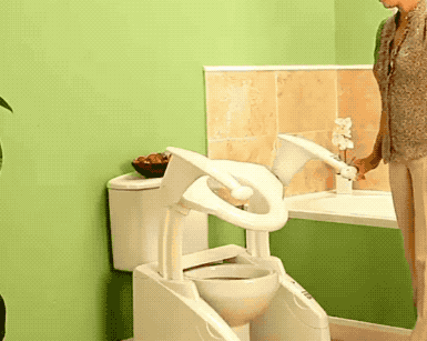馬桶坐墊則緩緩升起